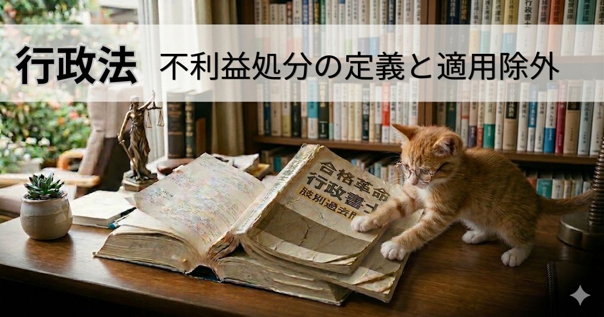 「不利益処分は『権利を奪う攻め』!適用除外は『条例か?法律か?網羅リストか?』の順で弾く!」