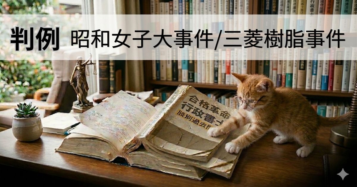 今日は、そんなモヤモヤをズバッと解決する「私人間(しじんかん)適用」がテーマ。 特に三菱樹脂事件昭和女子大事件は、肢別過去問記事でしっかり押さえるべき超重要判例のようなので取り上げてみました。試験でも頻出らしいので一緒に〇×だけでなく理解を深めたいと思います。