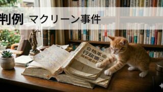 判例ドラマ マクリーン事件を完全攻略!「人権はあるけどビザは別」ってどういうこと? 行政書士試験の超重要判例「マクリーン事件」をわかりやすく解説!外国人の政治活動の自由と、ビザ更新における法務大臣の裁量権の関係を、受験生目線で整理します。 2026.04.11 判例ドラマ