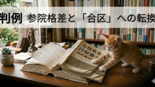 行政書士試験の超重要判例、最大判平成24.10.17を解説。最大5.00倍の格差を「違憲状態」とし、都道府県単位の選挙制度見直しを迫った歴史的判決です。参議院独自の「都道府県代表性」にNOを突きつけ、合区導入への道を作った背景をスッキリ整理。